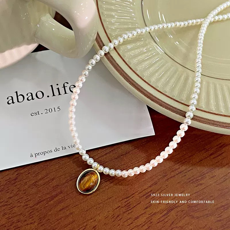 鎏金琥珀虎眼珍珠項鍊